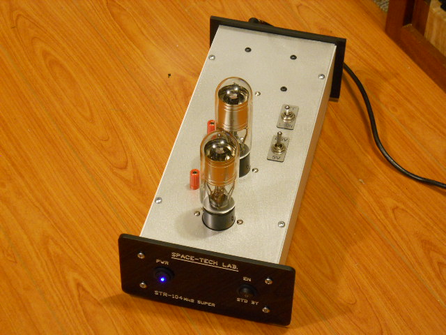 STR-104-Mk2-Super-DUAL C$2,380 [US$ 1904 only!] (Upgrade option for 5U4G / 6X5 / 5AR4 / 83...etc, 6X4 and other rectifiers requires optional adapter cable) This is two identical STR-104-Mk2 (or Mk2-Super) built into one single chassis. For someone who has two separate rectifier tubes want to upgrade either for mono blocks, dual mono power supply, preamp + DAC, preamp + buffer.....etc. This is one of the best options for super up-grade of any preamp, power amp, buffer and DAC with tube rectifiers.Just simply remove the original rectifier tube and plug in this super rectifier (via the adapter cable), you will immediate boost the dynamics, depth/height/width of the sound stage, more natural in tonal quality and much better instrumental and vocal separations, the degree of improvement from 30-200% depend on which model you choose. You can also use a lot of different tubes for tonal quality fine-tuning. You can run either single tube or double tubes in this self-powered version. 2.5V/5V filament settings available for STR-104 , and 5V/10V for STR-1001, STR-1002, STR-1003 and STR-1004. Note: If use rectifier tubes such as 3B22, 866A, 1616, 3B27, 3B28, 83,80 ..etc, you can use the STR to replace the rectifier tubes (such as 5U4G, 5AR4, 6X5...etc) in any of your tube power amp, pre-amp, buffer and DAC with any operation current...etc. If use small power output tubes such as 300B, 2A3...etc, you can only use the STR to replace the rectifier tube in very small output power single-ended power amp, pre-amp, buffer and DAC wtih low operation current ...etc. If you have any question on using the STR on your equipment, please contact us via email or phone for consultation. Standard chassis compose of Aluminum top, black plexiglass front and rear panel, white polymer side panels Black solid-aluminum or solid-oak upgrade add C$250 [US$ 200 only!] either model can add C$800 [US$ 640 only!] , upgrade to dual filament voltage version, it will then be able to use tubes with different filament voltage at the same time , such as 300B (5V) + 2A3 (2.5V) or 300B (5V) + 3B22 (2.5V)..etc.