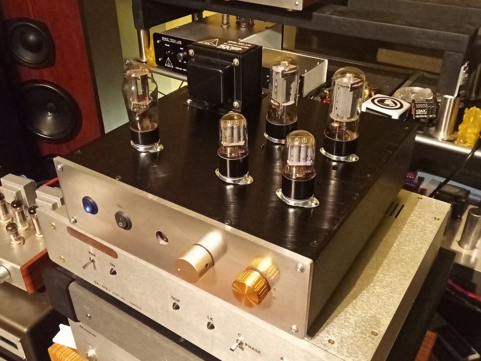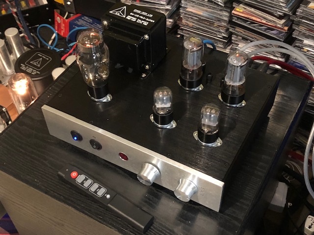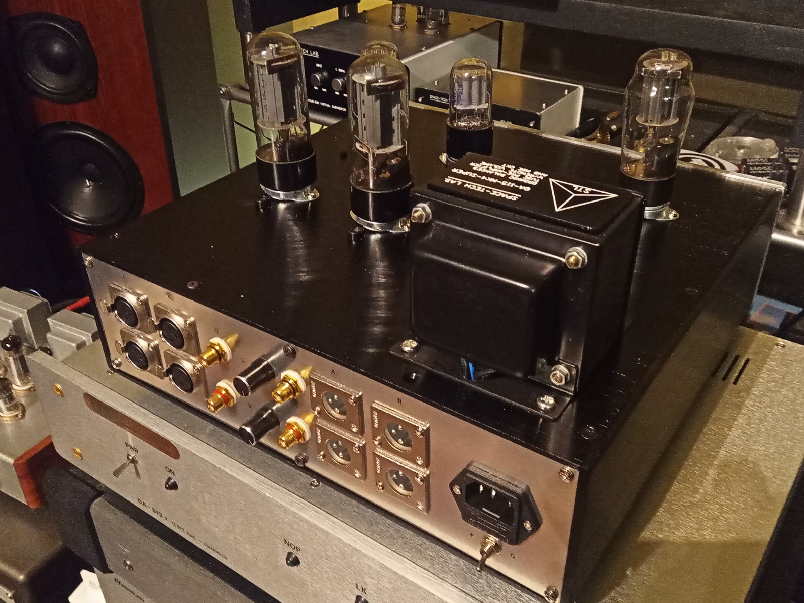 Option A: EL32, KT120 and KT150 ready with enhanced power transformer upgrade, infra-red remote controllable volume pot, rectifier tube upgraded to 274B
