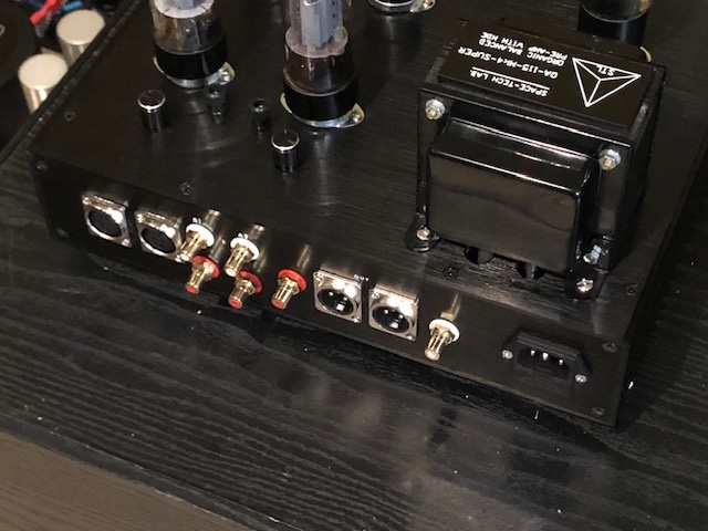 Option C: EL32, KT120 and KT150 ready with enhanced power transformer upgrade, heavy aluminum chassis or solid-wood side panel, output gain adjustment, infra-red remote controllable volume pot, rectifier tube upgraded to 274B (+$180)